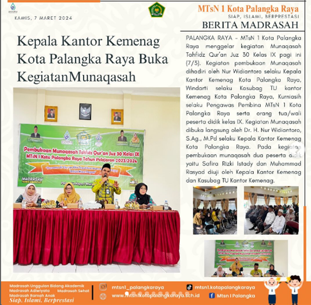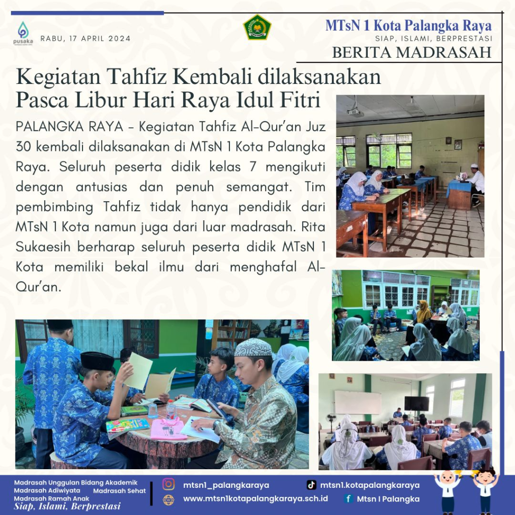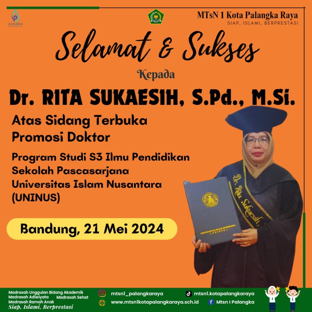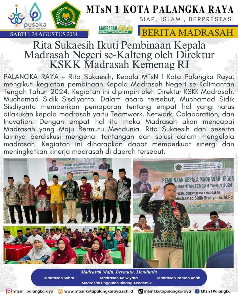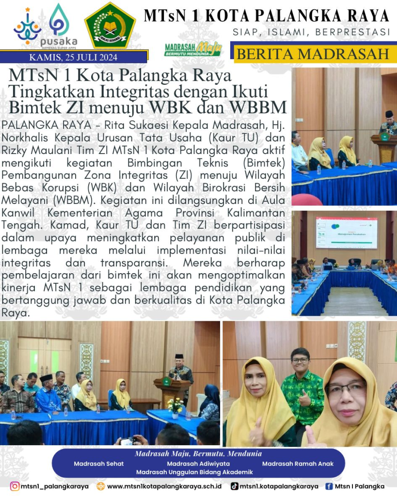 Keluarga Besar MTsN 1 Kota Palangka Raya mengucapkan Selamat Berkompetisi kepada Muhammad Nabil Hakim dan Muhammad Adnan Yasir dalam ajang Kompetisi Sains Madrasah (KSM) Tingkat Nasional 2024 di Kota Ternate