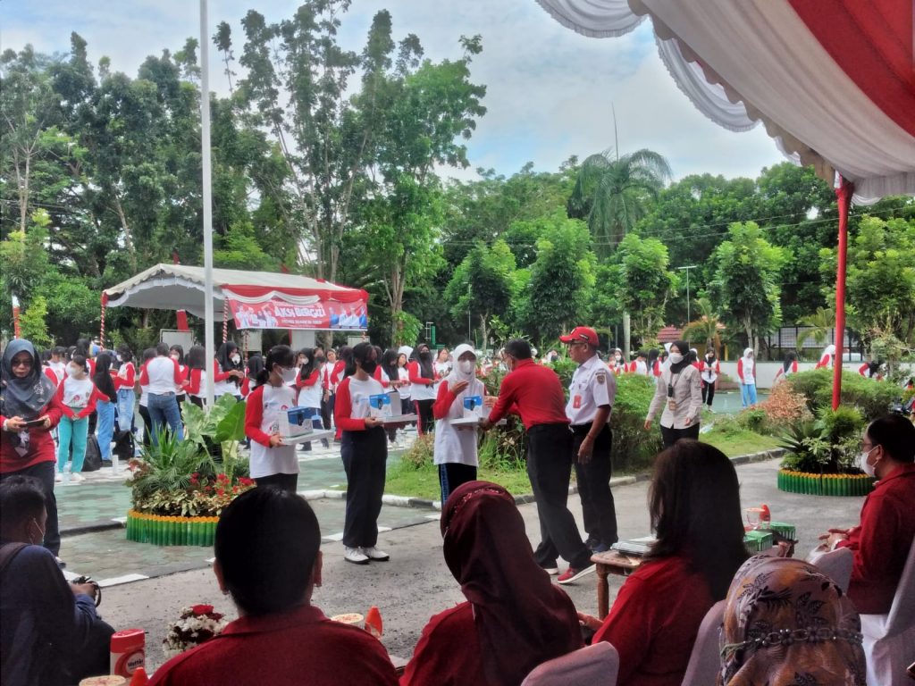 Gerakan Nasional Aksi Bergizi dihadiri oleh ratusan pelajar dan ASN tak kurang dari 50 instansi dan sekolah/madrasah di wilayah kota Palangka Raya. Melalui kegiatan ini upaya pencegahan di stunting difokuskan melalui edukasi di kalangan remaja. Kegiatan ini pun dikemas dengan apik sehingga peserta dapat beragam interaksi mulai dari senam bersama, lomba yel-yel, pembagian makanan sehat dan tablet tambah darah, serta pemberian bantuan alat kesehatan.