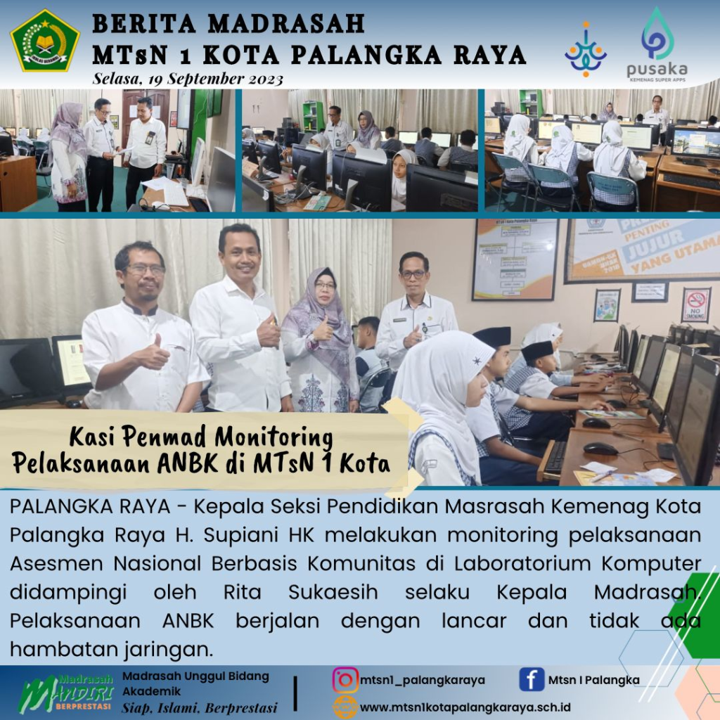 MTsN 1 Kota Palangka Raya melaksanakan Asesmen Nasional Berbasis Komputer (ANBK) selama dua hari. Senin, (18/09/2023) dengan tema Literasi & Survei Karakter dan hari Selasa (19/09/2023) dengan tema Numerasi & Survei Lingkungan Belajar